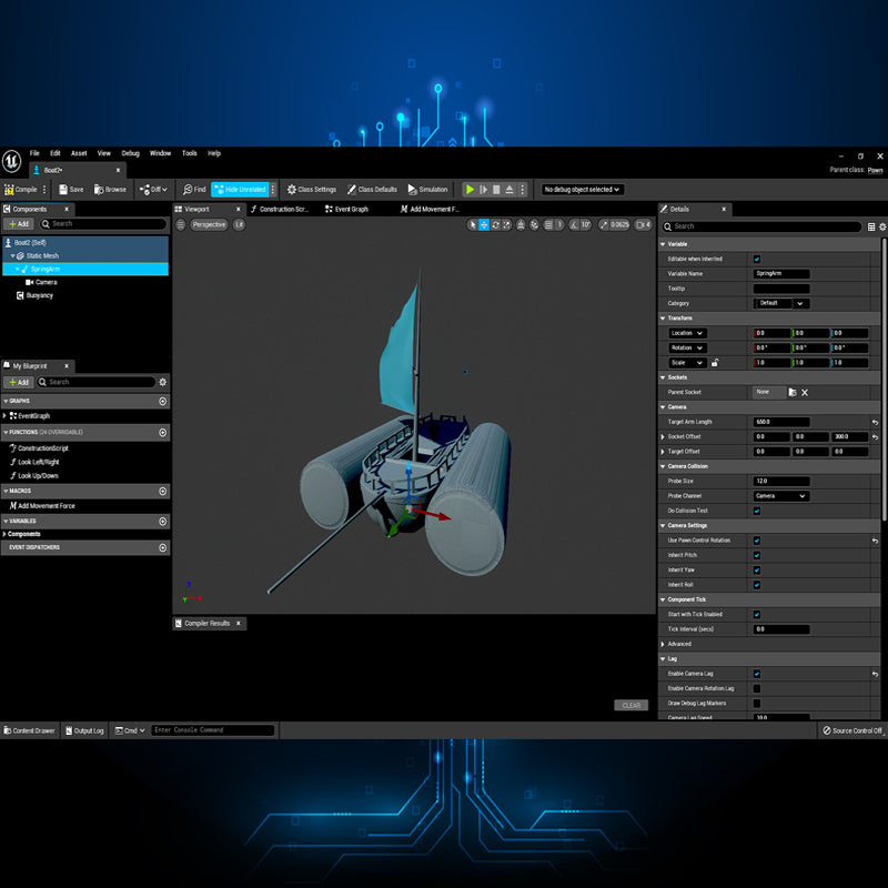 A boat in a video game isn't identical to a boat in reality. Creating one requires understanding exactly how one works in reality. From how it should smoothly move from every single wave on each part of the boat's body, to how it should behave on land, and how it will react when one stands and drives the boat as its captain. But then it also requires understanding how it will work with the digital world of Unreal Engine.